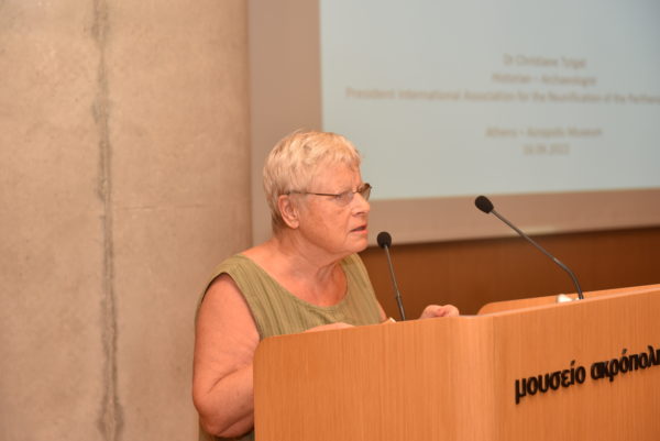 – Δρ. Christiane Tytgat, Πρόεδρος Διεθνούς Συνδέσμου για την Επανένωση των Γλυπτών του Παρθενώνα