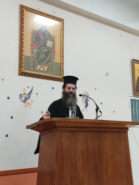 Στη συνέχεια τον λόγο πήρε ο Αρχιμανδρίτης π. Γεννάδιος Κουτσόπουλος, θεολόγος και συγγραφέας, ο οποίος ευχαρίστησε τον κ. Άνδραλη για το έργο που επιτελεί ως συγγραφέας, ενώ αναφέρθηκε και στην ωφέλεια που έχει η μελέτη της ζωής των Αγίων της Εκκλησίας μας.