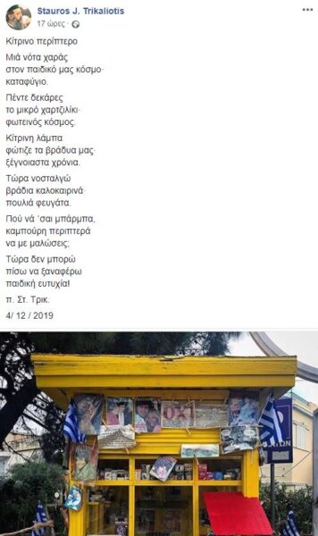 Ποίημά του, υπό τον τίτλο “ΚΙΤΡΙΝΟ ΠΕΡΙΠΤΕΡΟ” (04/12/2019) δημοσιεύει ο Πρωτοπρεσβύτερος π. Σταύρος Τρικαλιώτης.