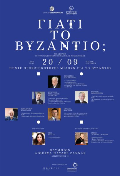 Η εκδήλωση, εμπνευσμένη από το ομώνυμο βιβλίο της βυζαντινολόγου Ελένης Γλύκατζη-Αρβελέρ έχει τον τίτλο: «Γιατί το Βυζάντιο;» και στοχεύει να αναδείξει τη μεγάλη σημασία του Βυζαντίου στην ιστορία, την κοινωνία και τον πολιτισμό μας. Υπό τον συντονισμό της δημοσιογράφου Βίκυς Φλέσσα, πέντε προσωπικότητες εγνωσμένου κύρους, μή Βυζαντινολόγοι, θα αναδείξουν καθένας από τον τομέα του, και μέσα από την προσωπική τους σκοπιά, διάφορες πτυχές της σημασίας του Βυζαντίου.