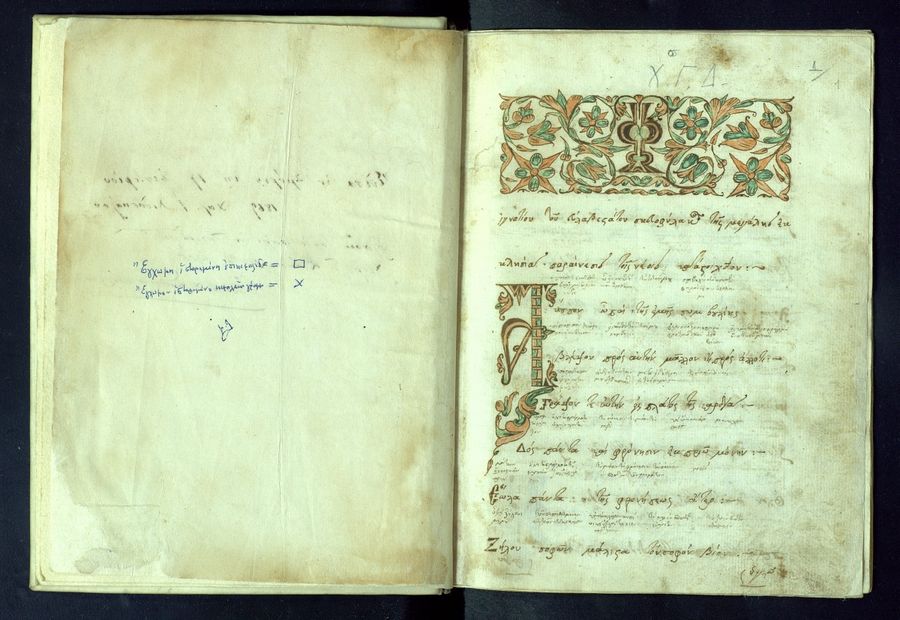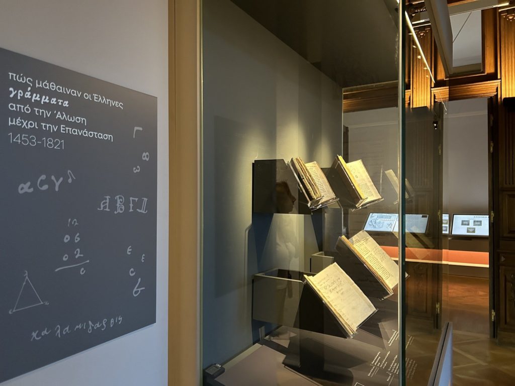 Όσοι είχαν τις δυνατότητες και επιθυμούσαν να συνεχίσουν την εκπαίδευσή τους μπορούσαν να συνεχίσουν τις σπουδές τους στο «ελληνικόν σχολείον» («σχολείον των ελληνικών μαθημάτων» ή «της κυκλοπαίδειας»). Κύριος σκοπός είναι η εξοικείωση με την αρχαία ελληνική γλώσσα μέσα από τη διδασκαλία της γραμματικής και του συντακτικού, τη μελέτη κειμένων και τη θεματογραφία. Τα «μαθηματάρια» είναι τα σχολικά εγχειρίδια της εποχής, στα οποία αντιγράφονται τα αρχαιοελληνικά αλλά και εκκλησιαστικά κείμενα που μελετώνται: ανάμεσα στις γραμμές και στα περιθώρια σημειώνονται η μετάφραση, διάφορα σχόλια και σημειώσεις. Τα κείμενα αυτά είχαν διαβαθμισμένη δυσκολία, όπως φαίνεται από το μάθημα για αρχαρίους που επιμελήθηκε στο τέλος του 18ου αιώνα ο Μιχαήλ στο χειρόγραφο του Ιστορικού & Παλαιογραφικού Αρχείου / ΜΙΕΤ, αρ. 21, που παρουσιάζεται στην έκθεση.
