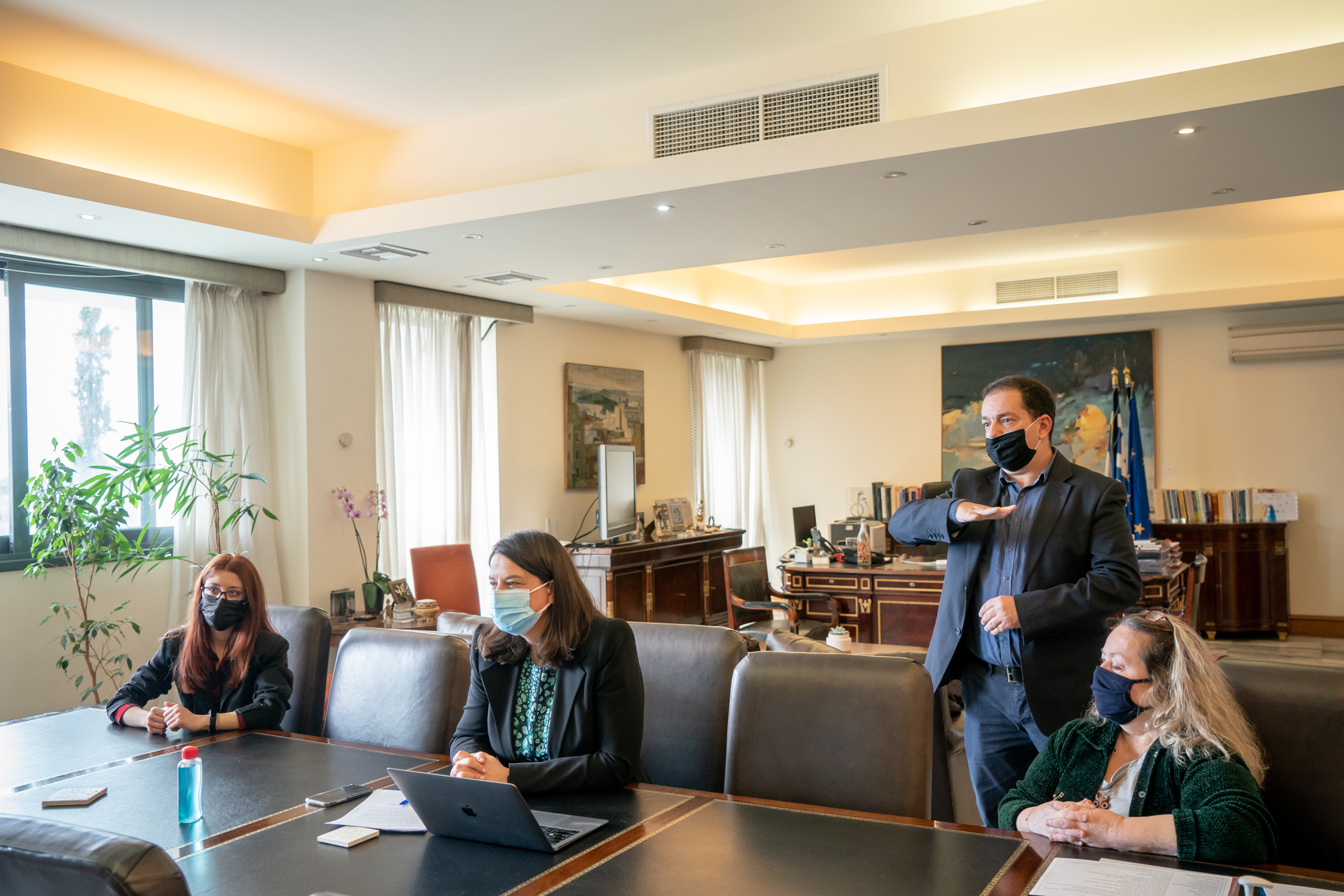 Μέλη του Διοικητικού Συμβουλίου του Συλλόγου Διδασκόντων Ελληνικής Νοηματικής Γλώσσας, μαθητές και εκπαιδευτικούς που συνεργάστηκαν κατά την απόδοση του Εθνικού Ύμνου στην Ελληνική Νοηματική Γλώσσα (ΕΝΓ) συνάντησε η Υπουργός Παιδείας και Θρησκευμάτων, Νίκη Κεραμέως.
