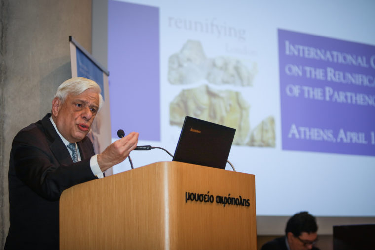 «Πριν απ’ όλα είναι εξαιρετικά συμβολικό, αλλά και ουσιαστικό, το ότι η σημερινή Διεθνής Ημερίδα -ένας λαμπρός “κρίκος” στην μακρά “αλυσίδα” της κοινής μας αποστολής για την επανένωση των Γλυπτών του Παρθενώνα- διεξάγεται σε αυτό το Μουσείο, τα εγκαίνια του οποίου έγιναν πριν 10 ακριβώς χρόνια, στις 20 Ιουνίου 2009», τόνισε ο Πρόεδρος της Δημοκρατίας και συνέχισε: «Ένα Μουσείο το οποίο, όπως όλη η διεθνής κοινότητα γνωρίζει, ανεγέρθηκε με κύριο προορισμό την φιλοξενία των Γλυπτών του Παρθενώνα μετά τον “επαναπατρισμό” τους, αναιρώντας και το τελευταίο, έστω και καταφανώς προσχηματικό, “επιχείρημα” αυτών που επιμένουν να συγκαλύπτουν το ιερόσυλο έγκλημα του Έλγιν ότι, δήθεν, η Ελλάδα δεν διέθετε κατάλληλο χώρο στέγασης των Γλυπτών του Παρθενώνα, αντίστοιχο μ’ εκείνον του Βρετανικού Μουσείου, δηλαδή αντίστοιχο με τον χώρο όπου “κρατούνται” τα Γλυπτά ως “λάφυρα” της κλοπής του Έλγιν!».