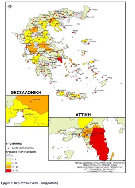 Όπως φαίνεται και στον χάρτη που ακολουθεί τα περισσότερα περιστατικά σημειώθηκαν στο λεκανοπέδιο Αττικής: