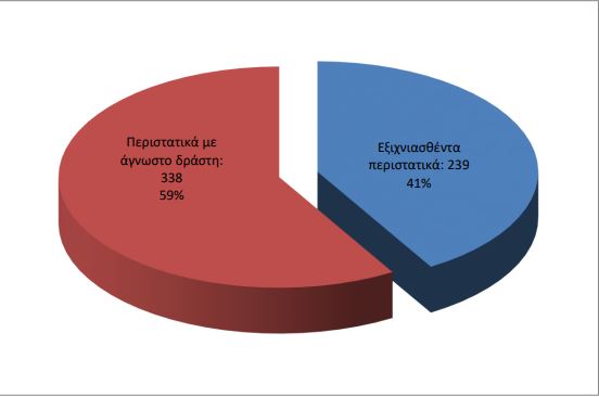 Σύμφωνα με τον στατιστικό πίνακα της Γενικής Γραμματείας Θρησκευμάτων τα 239 (41%) των περιστατικών εξιχνιάστηκαν ενώ τα 338 (59%) καταγράφονται ως περιστατικά με άγνωστο δράστη.