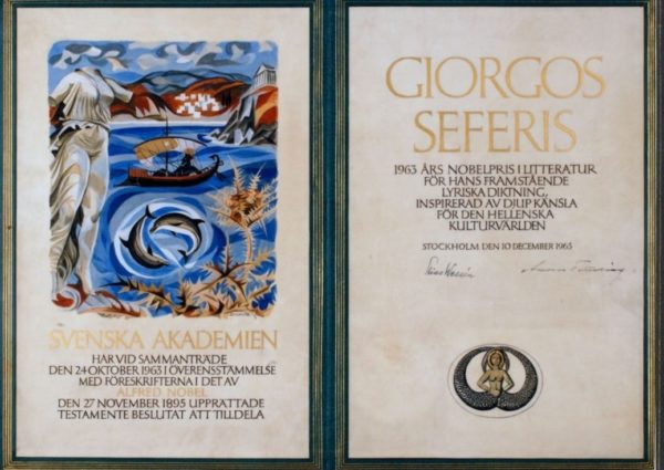 Ο διπλωμάτης και ποιητής Γιώργος Σεφέρης υπήρξε ο πρώτος Έλληνας που τιμήθηκε με Νόμπελ και συγκεκριμένα με το Νόμπελ Λογοτεχνίας. Στις 10 Δεκεμβρίου 1963, στην τελετή απονομής που έγινε στη Στοκχόλμη, παρέλαβε το επίζηλο βραβείο από τον βασιλιά της Σουηδίας Γουσταύο.