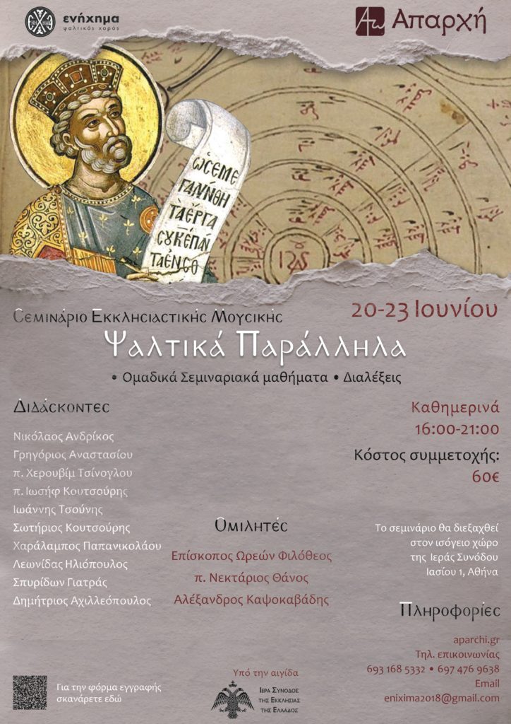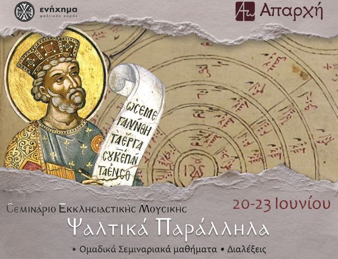 Η Ψαλτική Σχολή «Ενήχημα» σε συνεργασία με την «Απαρχή» και υπό την αιγίδα της Ιεράς Συνόδου της Εκκλησίας της Ελλάδος, θα πραγματοποιήσει -συν Θεώ- και φέτος, για τέταρτη συνεχόμενη χρονιά το Σεμινάριο Εκκλησιαστικής Μουσικής «Ψαλτικά Παράλληλα» από τις 20 μέχρι και τις 23 Ιουνίου.