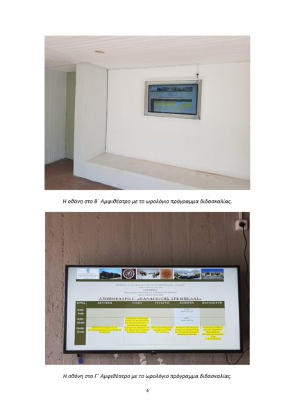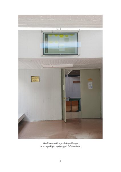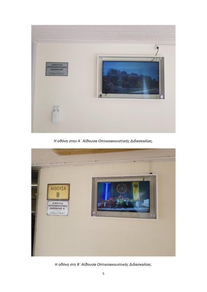 Νέες οθόνες (SMART TV) τελευταίας τεχνολογίας -με καλαίσθητα πλαίσια ασφαλείας- τοποθετήθηκαν στις εισόδους των τριών αμφιθεάτρων και των δύο αιθουσών οπτικοακουστικής διδασκαλίας με σκοπό την πληροφόρηση των φοιτητών για το μάθημα, που ανά ώρα πραγματοποιείται, και με στοιχεία που αφορούν στη λειτουργία της Σχολής.