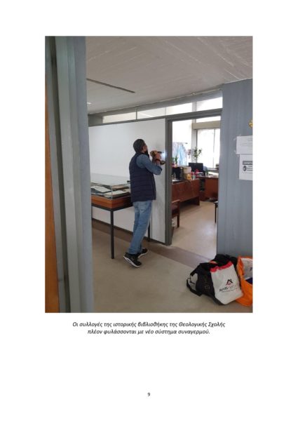 Παράλληλα, με την συνδρομή της Εταιρείας Αξιοποιήσεως και Διαχειρίσεως της Περιουσίας του Πανεπιστημίου Αθηνών, τοποθετήθηκαν νέα συστήματα συναγερμού στους δύο κομβικής σημασίας για την απρόσκοπτη διοικητική και ερευνητική διαδικασία χώρους της Σχολής, στη Γραμματεία και στη Βιβλιοθήκη. Διοικητικά έγγραφα, εξοπλισμός, καθώς και θησαυροί, όπως παλαίτυπα και χειρόγραφα βιβλία, είναι μετά από 20 και πλέον έτη, διάστημα κατά το οποίο είχε τεθεί σε αχρησία το προγενέστερο σύστημα συναγερμού, «θωρακισμένα» και τίθενται με ασφάλεια στη διάθεση των μελών ΔΕΠ, των ερευνητών, των φοιτητών και των υπαλλήλων.