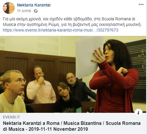 “Για μία ακόμη χρονιά, και σχεδόν κάθε εβδομάδα, στη Scuola Romana di Musica στην αγαπημένη Ρώμη, για τη βυζαντινή μας εκκλησιαστική μουσική” γράφει η Υμνωδός κα Νεκταρία Καραντζή σε σημερινή ανάρτησή της.