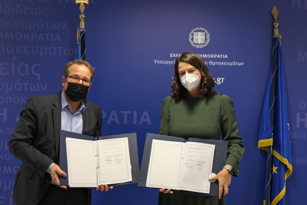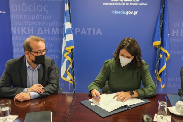 Συμφωνία με την οποία ορίζεται ότι η Έδρα του Ευρωπαϊκού Κέντρου για την Ανάπτυξη της Επαγγελματικής Κατάρτισης (Cedefop) θα συνεχίσει να βρίσκεται στην Θεσσαλονίκη, υπεγράφη μεταξύ της Υπουργού Παιδείας και Θρησκευμάτων Νίκης Κεραμέως και του Εκτελεστικού Διευθυντή του Cedefop, Juergen Siebel.