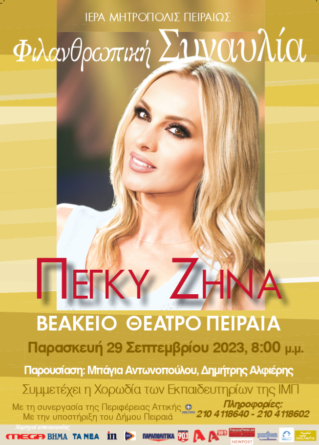 Φέτος θα βρεθεί κοντά μας η γνωστή ερμηνεύτρια Πέγκυ Ζήνα, την οποία θα πλαισιώσει, μεταξύ άλλων, και η μαθητική χορωδία των Εκπαιδευτηρίων της Ιεράς Μητροπόλεως Πειραιώς.