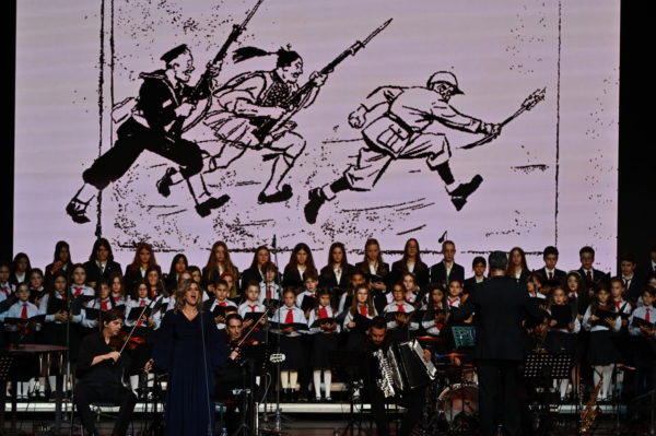 Το μεγαλείο της παράστασης συμπλήρωσαν η 50μελής Μικτή Νεανική Χορωδία της Ιεράς Αρχιεπισκοπής Αθηνών υπό τη διεύθυνση του Παύλου Κόρδη και η 80μελής Χορωδία Choeur du Cœur της Ελληνογαλλικής Σχολής Saint Joseph υπό τη διεύθυνση της Ιφιγένειας Κουρούση και του Αναστάσιου Σιδηρόπουλου. Με τις φωνές τους, οι νέοι αυτοί ερμηνευτές ύφαναν ένα συγκινητικό χαλί μνήμης και ελπίδας, που αγκάλιασε ολόκληρη την αίθουσα.