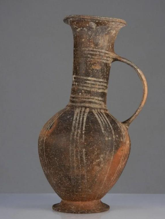 Υπολογίζεται ότι πριν από 3000 και περισσότερα χρόνια η ταπεινή αυτή κεραμική πρόχους έλαβε σχήμα και μορφή κάπου στην Κύπρο στα χέρια άγνωστου αγγειοπλάστη. Ακολούθως με περιεχόμενο από αρωματικά έλαια ή μέλι με όπιο ή κάποιο άλλο εμπορεύσιμο αγαθό ταξίδεψε δια θαλάσσης στην Παλαιστίνη, όπου κατέληξε ως προσφορά σε τάφο προσφιλούς νεκρού. «Μετά από παρέλευση χιλιάδων ετών εντοπίζεται από ανασκαφείς. Εγκαταλείπει τον ήρεμο κόσμο των τεθνεώτων και επανεντάσσεται στις ζώσες ανθρώπινες δραστηριότητες, καταλήγοντας πλέον όχι ως χρηστικό σκεύος, αλλά ως έργο τέχνης σε ιδιωτική συλλογή. Από πόσα χέρια πέρασε; Πόσες ψυχές ανθρώπων εύφρανε με το πολύτιμο περιεχόμενό της;» διερωτάται ο διευθυντής του μουσείου.