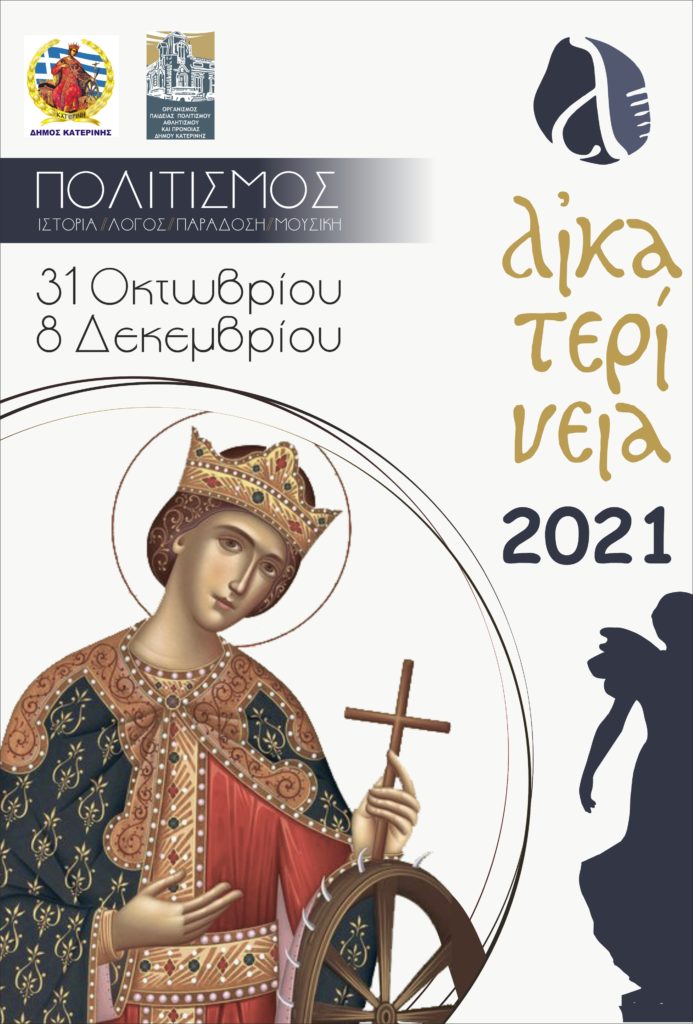 Τα ΑΙΚΑΤΕΡΙΝΕΙΑ, μετά από μία «ανάπαυλα» που επέβαλε η υγειονομική κρίση επιστρέφουν δυναμικά με τη 14η διοργάνωση. Για σαράντα περίπου ημέρες (31 Οκτωβρίου έως 08 Δεκεμβρίου) διαφορετικές εκφάνσεις τέχνης & πολιτισμού συνιστούν ένα πλέγμα εκδηλώσεων, το οποίο προβάλλει το σύγχρονο – δημιουργικό πρόσωπο της πόλης και το καλλιτεχνικό δυναμικό της ευρύτερης περιοχής.