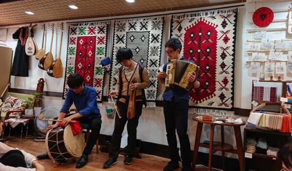 Στη συνάντηση τρεις νέοι από το Πανεπιστήμιο Κιότο έπαιξαν ποντιακή μουσική, με τον λυράρη να είναι αυτοδίδακτος!