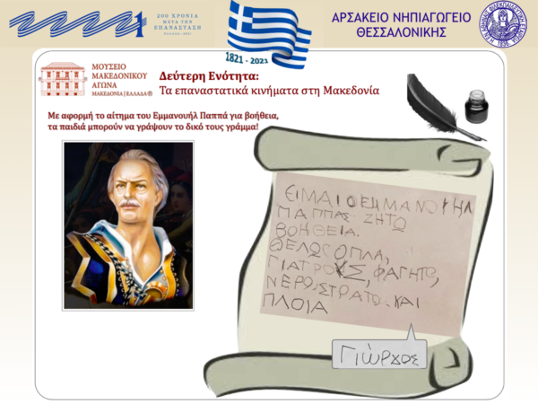 Οι μαθητές και οι μαθήτριες όλων των τάξεων είχαν την ευκαιρία να ξεναγηθούν διαδραστικά στα εκθέματα και τα κειμήλια του Μουσείου που αφορούν στα επαναστατικά κινήματα και την κληρονομιά των αγωνιστών στην Μακεδονία του 19ου αιώνα. Όπλα, χάρτες, διοράματα, παραδοσιακές φορεσιές, εικόνες και αντικείμενα της καθημερινής ζωής παρουσιάστηκαν μέσω live streaming μπροστά στα μάτια μαθητών και εκπαιδευτικών. Στη συνέχεια, μέσω της ηλεκτρονικής προβολής του πλούσιου ψηφιακού υλικού του Μουσείου, παρακινήθηκαν να παρατηρήσουν και να σχολιάσουν με τον δικό τους τρόπο τις κομβικές ιστορικές, κοινωνικές και πολιτιστικές εξελίξεις στην κοινωνία της Μακεδονίας από την έναρξη του απελευθερωτικού αγώνα των Ελλήνων μέχρι και τις απαρχές του ένοπλου Μακεδονικού Αγώνα.