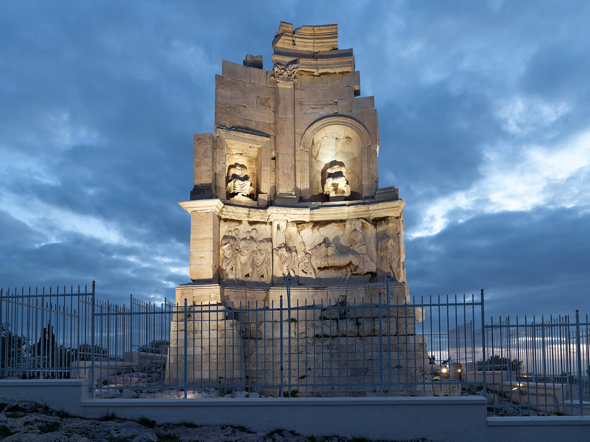 Με τον ναό του Ηφαίστου στην Αρχαία Αγορά των Αθηνών και το μνημείο του Φιλοπάππου, δύο σημαντικά τοπόσημα της πόλης που «συνομιλούν» με τον Ιερό Βράχο της Ακρόπολης, ολοκληρώνεται το έργο του νέου φωτισμού των μνημείων. Τα δύο μνημεία φωτίζονται με την ίδια φιλοσοφία και τεχνολογία που υλοποιήθηκε στα μνημεία της Ακρόπολης, ώστε να υπάρχει κοινό λεξιλόγιο στη θέασή τους από κάθε σημείο της πόλης, δίνοντας νέα πνοή στο αστικό τοπίο της Αθήνας. Η νέα μελέτη, εκτός από τις αισθητικές παρεμβάσεις, επικεντρώθηκε στην αναβάθμιση των υφιστάμενων τεχνικών υποδομών, με τον εκσυγχρονισμό της ηλεκτρολογικής/φωτιστικής εγκατάστασης και του συστήματος αυτοματισμού και ελέγχου των φωτιστικών σωμάτων, διασφαλίζοντας εξοικονόμηση ενέργειας, ελάχιστο κόστος συντήρησης και αποφυγή φωτορύπανσης.