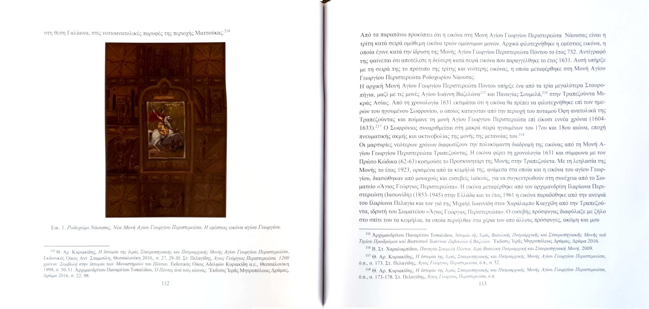 Αυτόν τον πολιτισμικό θησαυρό φωτίζει ο νέος, ιδιαίτερα καλαίσθητος τόμος, την επιμέλεια του οποίου υπογράφει ο Δρ. Θεοδόσιος Κυριακίδης, ιστορικός και πρόεδρος του Σωματείου Αγίου Γεωργίου Περιστερεώτα. Η ίδρυση του Σωματείου, το 1965 στο Ροδοχώρι Νάουσας, από τους πρόσφυγες πρώτης γενιάς που έζησαν κοντά στην Μονή, υπό την εμπνευσμένη καθοδήγηση του Χαράλαμπου Κιαγχίδη, δημιούργησε τις προϋποθέσεις για να συνεχιστεί στην Ελλάδα η πολυσήμαντη ιστορία της Μονής.