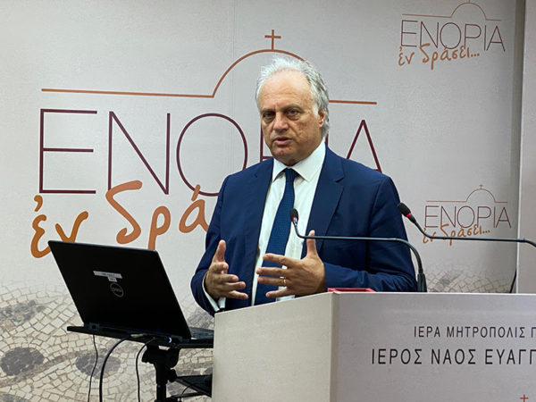 Εκδήλωση με θέμα «Τεχνητή Νοημοσύνη – Ένα χρήσιμο εργαλείο: Ψύχραιμη προσέγγιση στις ευκαιρίες για ενίσχυση των ανθρώπινων δυνατοτήτων», πραγματοποιήθηκε την Κυριακή 4 Οκτωβρίου, στο Πνευματικό Κέντρο του Ιερού Ναού Ευαγγελιστρίας Πειραιώς, στο πλαίσιο του προγράμματος «ΕΝΟΡΙΑ εν δράσει…».