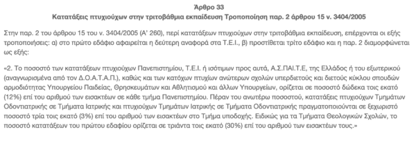 Την αύξηση στο 30% του ποσοστού των εισακτέων με κατατακτήριες εξετάσεις στις Θεολογικές Σχολές Αθήνας και Θεσσαλονίκης προβλέπει νομοθετική ρύθμιση του Υπουργείου Παιδείας, Θρησκευμάτων και Αθλητισμού.