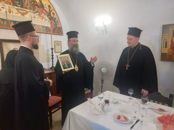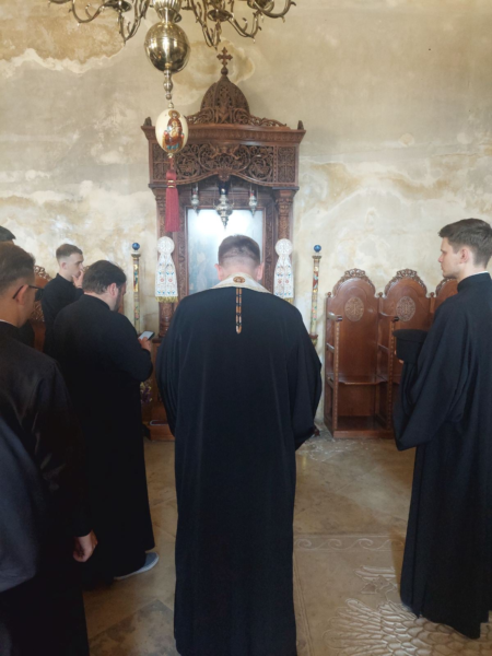 Στην Ιερά Πατριαρχική και Σταυροπηγιακή Μονή Παναγίας Χρυσοπηγής, ένα από τα γνωστότερα γυναικεία μοναστήρια σήμερα στην Ελλάδα, συμμετείχαν στην Θεία Λειτουργία στο Καθολικό της Μονής και στη συνέχεια είχαν την ευκαιρία να ενημερωθούν από την Καθηγουμένη Γερόντισσα Θεοξένη για τις οικολογικές δραστηριότητες του μοναστηριού, την καλλιέργεια των κτημάτων με τη μέθοδο της βιολογικής καλλιέργειας, ενώ έτυχαν αβραμιαίας φιλοξενίας στα νέα μοναστικά κτίσματα της Χρυσοπηγής, κάτω από τα ερείπια του βυζαντινού κάστρου «Κάστελλος». Συμμετείχαν του Εσπερινού στον εορτάζοντα Ναό στα Νωπήγεια (+ Μεταμορφώσεως), Παράρτημα της ΟΑΚ, και συμμετείχαν στη Θεία Λειτουργία στο μικρό Μοναστήρι (13ος αιώνας), που σήμερα είναι το Κοιμητήριο της Ιεράς Μονής Γωνιάς, αφιερωμένο στην Μεταμόρφωση, ενώ στο τέλος είχαν μία ακόμη ενδιαφέρουσα συζήτηση με τον π. Θεολόγο. Με μεγάλη ευλάβεια και συγκίνηση συμμετείχαν στην Ιερά Παράκληση της Παναγίας και την ευλογία των καρπών της γης σε ένα εκ των αρχαιότερων Ναών της Κρήτης, τον Ιερό Ναό Μιχαήλ Αρχαγγέλου (6ος αιώνας), στην Επισκοπή Κισάμου, μοναδική Ροτόντα στην Κρήτη, έδρα του Αγίου Εθνοϊερομάρτυρα Μελχισεδέκ, Επισκόπου Κισάμου και Σελίνου, χοροστατούντος του Σεβασμιωτάτου Μητροπολίτου Κισάμου και Σελίνου κ. Αμφιλοχίου. Ο Επίσκοπος συνεχάρη τους νέους Φοιτητές από τις δύο Θεολογικές Ακαδημίες της Ορθοδόξου Εκκλησίας της Ουκρανίας και τους ευχήθηκε να διακονήσουν την Εκκλησία με πιστότητα, υπακοή και αγάπη με την ευχή «σύντομα να καταπαύσει ο πόλεμος και να επικρατήσει η ειρήνη στην πολυπόθητη Ουκρανία».