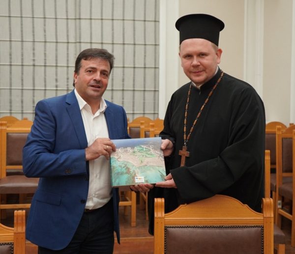 Την τελευταία ημέρα και πριν την αναχώρησή τους από το Ηράκλειο επισκέφτηκαν την Περιφέρεια Κρήτης, όπου οι αντιπροσωπείες των Φοιτητών ενημερώθηκαν από τον Αντιπεριφερειάρχη Ηρακλείου κ. Νίκο Συριγωνάκη για την ιστορία του νησιού, τον τουριστικό του χαρακτήρα καθώς και στην μεγάλη ορθόδοξη παράδοση, η οποία αποτελεί σημείο σύνδεσης και ανάπτυξης συνεργασιών της Ελλάδας και της Ουκρανίας, σημειώνοντας πως ο ρόλος της Εκκλησίας είναι σημαντικός και συχνά καταλυτικός στις δύσκολες στιγμές της ιστορίας. Στη συνέχεια και στην Ιερά Αρχιεπισκοπή Κρήτης είχαν την ευκαιρία να συνομιλήσουν με τον Σεβασμιώτατο Αρχιεπίσκοπο Κρήτης κ. Ευγένιο, ο οποίος αναφέρθηκε στον απόστολο Τίτο, πρώτο Επίσκοπο Κρήτης, καθώς και στις σχέσεις με την Μητέρα Εκκλησία, εξέφρασε δε τη διάπυρη ευχή και προσευχή όλων για την κατάπαυση του πολέμου στην Ουκρανία και την ειρήνευση των λαών, την αποκατάσταση του δικαίου και την ομαλοποίηση των συνθηκών, προκειμένου το Κράτος της Ουκρανίας να συνεχίσει ακώλυτα την πορεία και μαρτυρία του στο μέλλον. Στη συνέχεια ο ίδιος συνόδευσε την Ομάδα στο παρακείμενο Μουσείο Χριστιανικής Τέχνης «Αγία Αικατερίνη των Σιναϊτών» της Ιεράς Αρχιεπισκοπής Κρήτης όπου και ξεναγήθηκαν από τους συνεργάτες της Αρχιεπισκοπής.