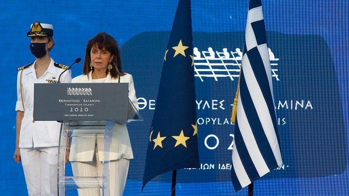 «Η τιμή και μνήμη των Θερμοπυλών και της Σαλαμίνας συνιστά την ηχηρή υπόμνηση της ευθύνης και της βαριάς ιστορικής και πολιτιστικής μας κληρονομιάς, αυτής που προσέδωσε στο έθνος μας το ιστορικό του βάθος και το συνέδεσε ακλόνητα με την Ευρώπη» τόνισε η Πρόεδρος της Δημοκρατίας Κατερίνα Σακελλαροπούλου, κατά την ομιλία της στον εορτασμό του επετειακού έτους «Θερμοπύλες-Σαλαμίνα 2020».