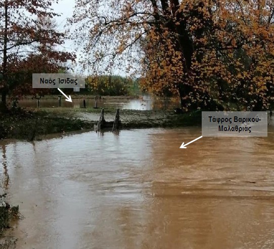 Οι πλημμυρισμένοι Ναοί της Ίσιδος και του Υψίστου Διός λόγω υπερχείλισης της τάφρου Βαρικού – Μαλαθριάς