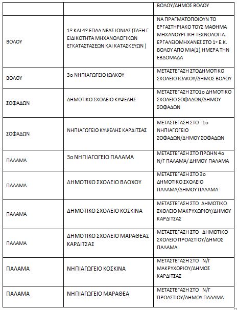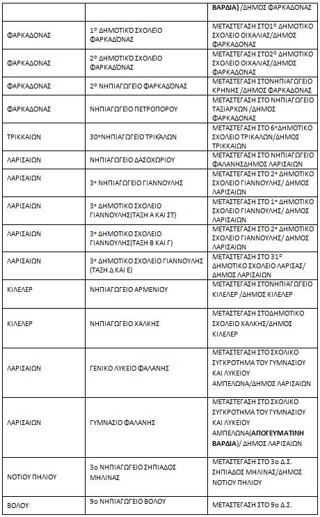 Η μεταφορά των μαθητών των παραπάνω σχολείων έχει προβλεφθεί και θα καλυφθεί από την Περιφέρεια Θεσσαλίας.