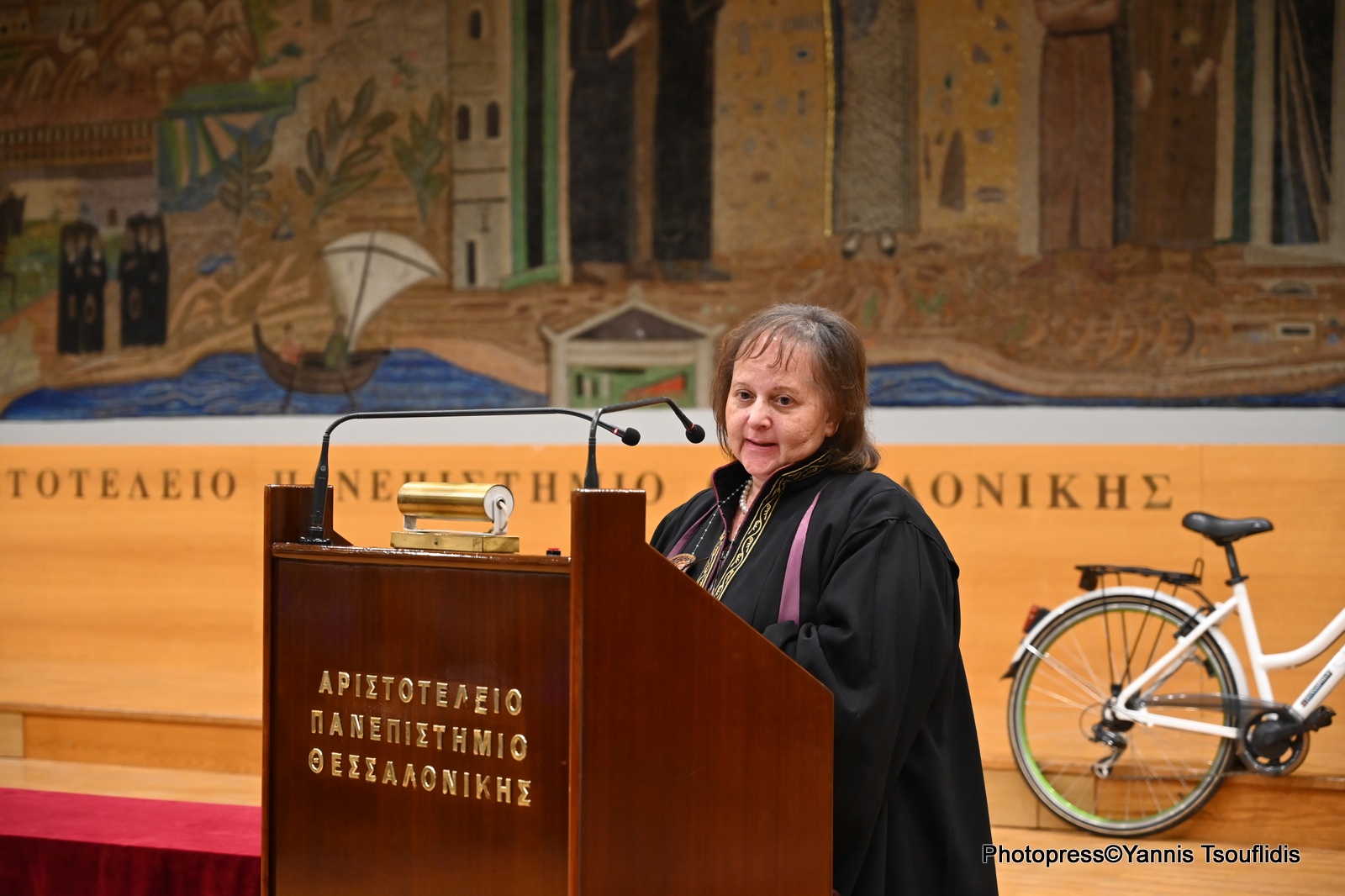 Στον πανηγυρικό της ημέρας, με τίτλο «Η αρετή της αριστείας στον αρχαίο κόσμο και η αριστεία της αρετής στους Τρεις Ιεράρχες», η Καθηγήτρια του Τμήματος Κοινωνικής Θεολογίας και Χριστιανικού Πολιτισμού της Θεολογικής Σχολής του ΑΠΘ Κυριακούλα Παπαδημητρίου, ανέδειξε το μεγάλο επίτευγμα των Τριών Ιεραρχών στη σύζευξη της αρχαίας σοφίας με τη σοφία του λόγου του Θεού ως προς το θέμα ειδικά της αριστείας, που συνδέεται άρρηκτα με την Παιδεία. «Η έννοια της αριστείας βρίσκεται σήμερα στο κέντρο του κοινωνικού διαλόγου και το ζήτημα της αρετής αποτελεί στην εποχή μας ένα από τα τρέχοντα ζητήματα της φιλοσοφικής συζήτησης για την αρεταλογία ως ένα εναλλακτικό ‘παράδειγμα’ της ηθικής φιλοσοφίας. Είναι, γι’ αυτό, ενδιαφέρον να παρουσιασθεί, έστω αδρά, η μοναδική πνευματική σύνθεση του θέματος, που ο Μέγας Βασίλειος, ο Γρηγόριος ο Θεολόγος και ο Ιωάννης ο Χρυσόστομος προσέφεραν στον πολιτισμό μας» τόνισε.