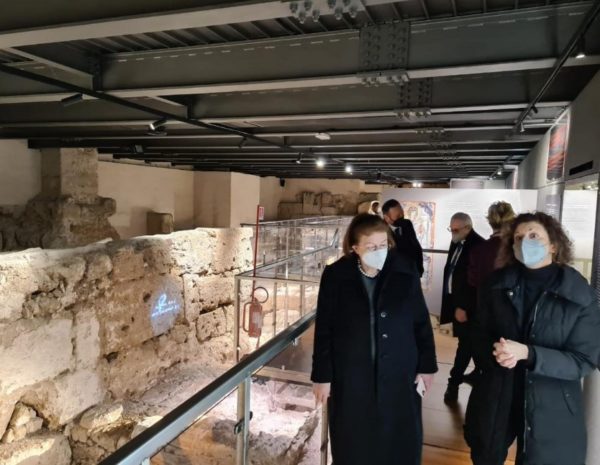 Στην ξενάγηση που ακολούθησε στους χώρους του Palazzo Reale, από τους σημαντικότερους μουσειακούς και εκθεσιακούς χώρους της Σικελίας, τη Λίνα Μενδώνη συνόδευσαν ο γενικός γραμματέας της ARS Fabrizio Scimè, η διευθύντρια του Ιδρύματος Federico II Patrizia Monterosso, ο Γενικός Διευθυντής του Μουσείου της Ακρόπολης Νίκος Σταμπολίδης και η καθηγήτρια του ΕΚΠΑ Mariangela Ielo. Από τα πλέον ενδιαφέροντα τμήματα του Palazzo Reale είναι οι υπόγειοι χώροι, στους οποίους πρόσφατα ανεδείχθησαν κατά χώραν οι υποκείμενες αρχαιότητες, καθώς και η έκθεση “Εξαγνισμός”, η οποία διαπραγματεύεται έννοιες, όπως η πνευματικότητα, η ύπαρξη, η σωτηρία, η ζωή, ο θάνατος. Στην έκθεση συνδιαλέγονται έργα τέχνης από τον 6ο αιώνα π.Χ. έως τον 18ο αι. από μουσεία και εκκλησίες της Σικελίας με δημιουργίες του Αμερικανού video artist Bill Viola.