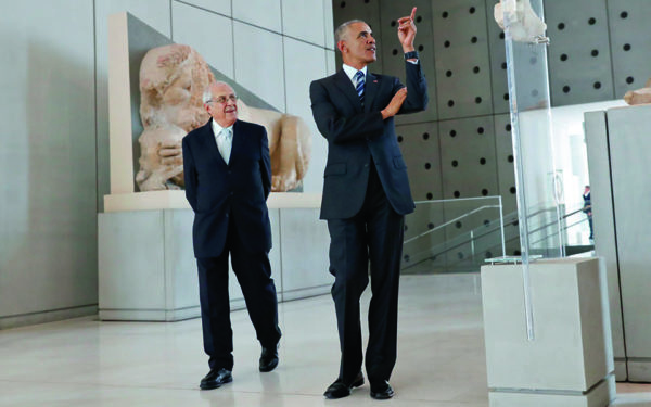 Ο αείμνηστος Δ. Παντερμαλής με τον Μπάρακ Ομπάμα στο Μουσείο της Ακρόπολης