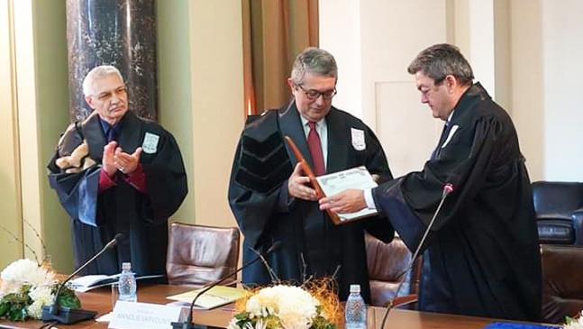 Η τελετή της αναγόρευσης έγινε στην αίθουσα τελετών «Constantin Stoicescu», και άρχισε στις 14.00, με συντονισμό από τον Πρόεδρο της Συγκλήτου του Πανεπιστημίου του Βουκουρεστίου, Prof. Marian Preda.