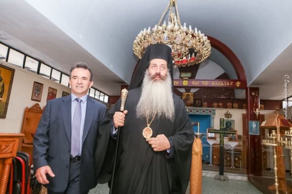 Ο Μητροπολίτης κ. Συμεών με τον Διευθυντή του Σχολείου κ. Ιωάννη Ζαχαράκη στο παρεκκλήσιο του Αγίου Στυλιανού