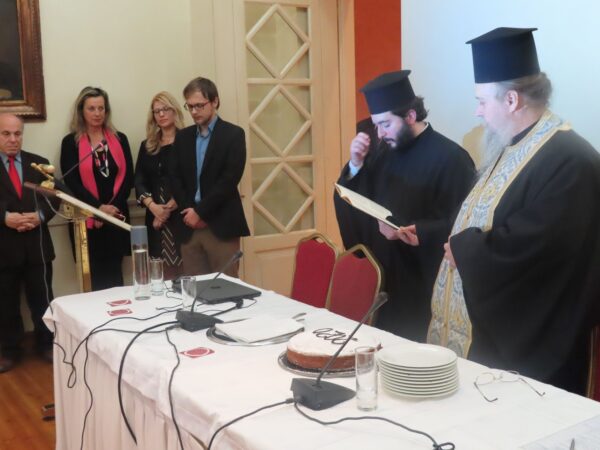 Τους καθιερωμένους χαιρετισμούς και τις προσφωνήσεις ακολούθησαν σημαντικές υπομνήσεις προς τους νέους ερευνητές και ερευνήτριες από τις Αρχές της Θεολογικής Σχολής και του Τμήματος Κοινωνικής Θεολογίας και Θρησκειολογίας, και, στη συνέχεια, έλαβε χώρα η κοπή της Πρωτοχρονιάτικης Βασιλόπιτας των Προγραμμάτων Μεταπτυχιακών και Διδακτορικών Σπουδών του Τμήματος, προνοία του Συλλόγου Μεταπτυχιακών Φοιτητών και Υποψηφίων Διδακτόρων (Σ.ΜΕ.Κ.ΘΕ.).