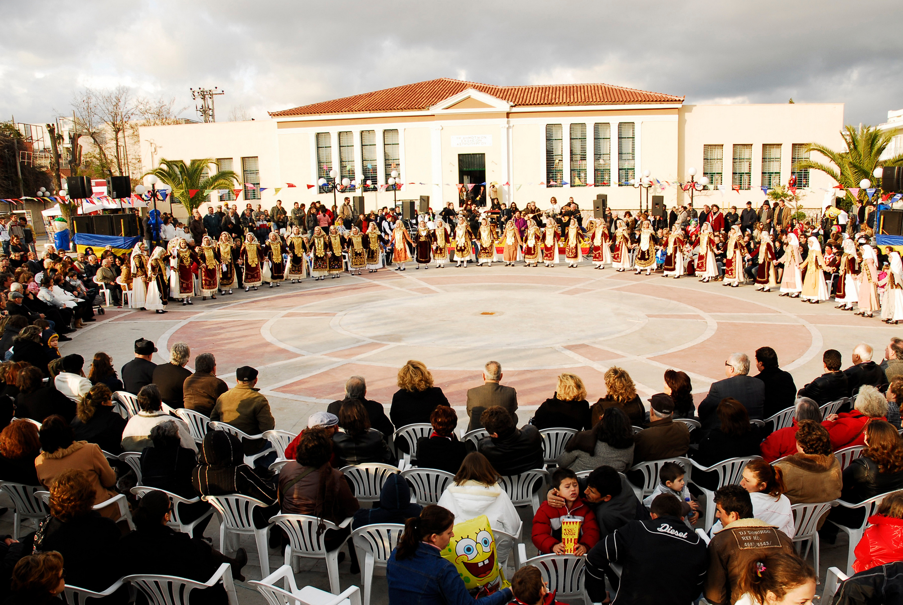 Μετά τα σκωπτικά προλεγόμενα δρώμενα στην πλατεία του 1ου Δημοτικού Σχολείου, σχηματίζεται μεγάλος κύκλος νέων γυναικών που χορεύουν αρβανίτικους χορούς και τραγουδούν στα Αρβανίτικα χωρίς μουσική. Ακολουθεί ζωντανή μουσική από τοπικούς οργανοπαίκτες, με τις γυναίκες να χορεύουν Καλαματιανά και Συρτά, ενώ το δρώμενο ολοκληρώνεται με τη συμμετοχή των ανδρών, που χορεύουν χορούς του γλεντιού και τον τοπικό ανδρικό Αποκρεάτικο Χορό.