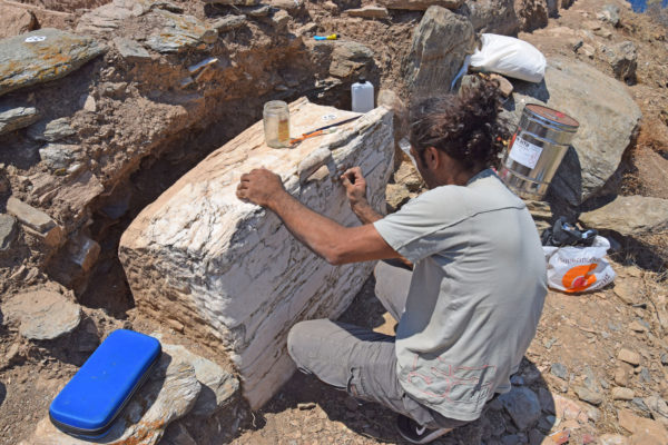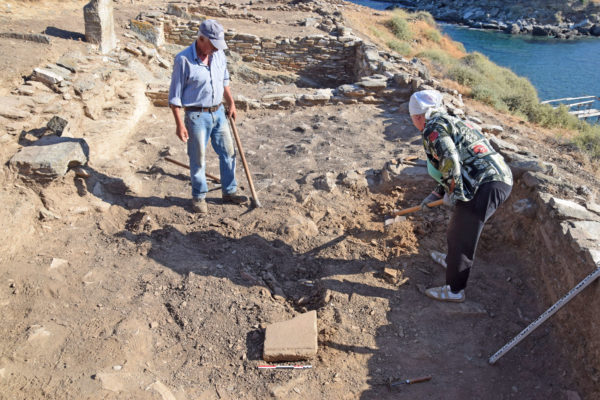 Η συνεργατική ανασκαφική έρευνα του Τομέα Αρχαιολογίας του Τμήματος Ιστορίας, Αρχαιολογίας και Κοινωνικής Ανθρωπολογίας του Πανεπιστημίου Θεσσαλίας και της Εφορείας Αρχαιοτήτων Κυκλάδων του Υπουργείου Πολιτισμού και Αθλητισμού πραγματοποιήθηκε φέτος και πάλι στη βραχονησίδα «Βρυοκαστράκι», απέναντι από το «Βρυόκαστρο», δηλ. την αρχαία πόλη της Κύθνου, από τις 29 Ιουνίου έως τις 31 Ιουλίου. Η θέση κατοικήθηκε αδιάκοπα από τον 12ο αιώνα π.Χ. έως τον 7ο αιώνα μ.Χ., ενώ υπάρχουν πλέον σαφείς ενδείξεις και για την παρουσία κυκλαδικής εγκατάστασης της 3ης χιλιετίας π.Χ. (εικ. 1-2). Οι εργασίες επικεντρώθηκαν στους τρεις τομείς που ερευνώνται από το 2018: το μνημειώδες ιερό των γεωμετρικών-κλασικών χρόνων, το επίμηκες Κτήριο 2 της Ύστερης Αρχαιότητας και την τρίκλιτη πρωτοβυζαντινή βασιλική. Τα αποτελέσματα υπήρξαν και φέτος ιδιαίτερα σημαντικά.
