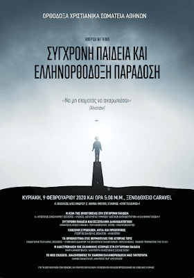 Σας ενημερώνουμε ότι η Πανελλήνια Ένωση Γονέων “Η ΧΡΙΣΤΙΑΝΙΚΗ ΑΓΩΓΗ” διοργανώνει την ημερίδα “Σύγχρονη Παιδεία και Ελληνορθόδοξη Παράδοση” που θα πραγματοποιηθεί την Κυριακή, 09 Φεβρουαρίου 2020 και ώρα 5:00 μ.μ., στο Ξενοδοχείο Caravel (Λ. Βασιλέως Αλεξάνδρου 2, Αθήνα, METRO, Σταθμός «Ευαγγελισμός»).