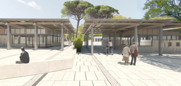 Φωτορεαλιστική απεικόνιση της νέας εισόδου. Άποψη από την αυλή προς την πλατεία