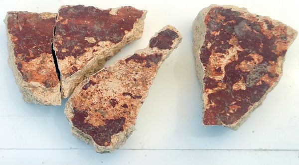 Πεσμένα τμήματα κονιάματος που σώζουν ερυθρό χρώμα