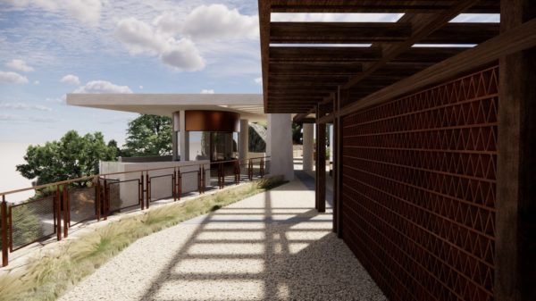 Φωτορεαλιστική απεικόνιση εκδοτηρίου-διαδρόμου ΑμεΑ στον αρχαιολογικό χώρο της Φαιστού