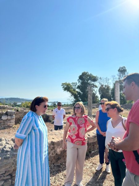 Η Υπουργός Πολιτισμού Λίνα Μενδώνη κατά την αυτοψία στον αρχαιολογικό χώρο της Νικόπολης