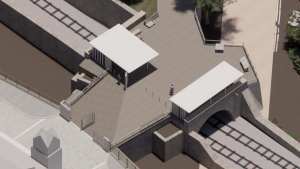 Στην είσοδο επί της οδού Αποστόλου Παύλου αναβαθμίζεται το υφιστάμενο εκδοτήριο και κατασκευάζεται στέγαστρο για τη σκίαση των επισκεπτών, κατά τη διαδικασία έκδοσης εισιτηρίων, του αυτόματου πωλητή νερού και του εκδοτηρίου e-ticket. Για τους χώρους υγιεινής προτείνεται ολική ανακαίνιση των υφιστάμενων εγκαταστάσεων, με προσθήκη νέων, με προδιαγραφές και για ΑμεΑ, αλλά και η αντικατάσταση των παλαιών δικτύων ύδρευσης και αποχέτευσης. Όσον αφορά στον εξοπλισμό, προτείνονται νέοι στύλοι περισχοίνισης, νέες πληροφοριακές πινακίδες, νέα καθιστικά και νέα κιγκλιδώματα.