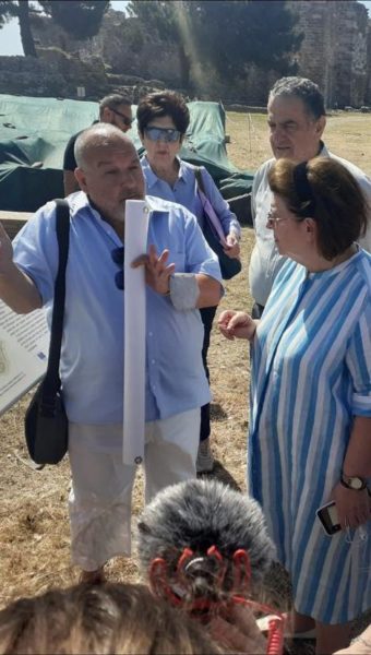 Στο πλαίσιο των επισκέψεών της σε μνημεία της Μυτιλήνης, η Υπουργός Πολιτισμού και Αθλητισμού Λίνα Μενδώνη πραγματοποίησε αυτοψία στα έργα αποκατάστασης του περιβόλου που είναι σε εξέλιξη στο Κάστρο Μυτιλήνης.