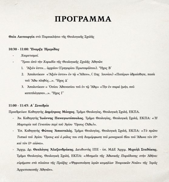 Ημερίδα με τίτλο: “Πάλαι μέν ιερόν νυν δε Άγιον Όρος λέγομεν” πραγματοποιήθηκε σήμερα, Πέμπτη 11 Μαϊου 2023, στην αίθουσα Οπτικοακουστικών Μέσων της Θεολογικής Σχολής Αθηνών.