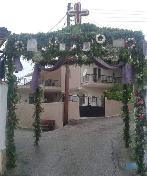 Στην κορυφή τοποθετούνται και εικόνες που φέρνουν οι νοικοκυρές από τα σπίτια τους ενώ παράλληλα σε ένα μικρό τραπεζάκι βάζουν μια γλάστρα με το λουλούδι συμπογιά – που ανθίζει όπως και οι Πασχαλιές τη Λαμπρή – και αφού περάσει το βράδυ ο Επιτάφιος παίρνουν τα λουλούδια στο σπίτι για ευλογία.