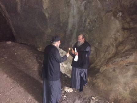 Οι συνοδοί του Πατριάρχη, ο Μητροπολίτης Δράμας Παύλος, μαζί με τον τον Μητροπολίτη Νεαπόλεως και Σταυρουπόλεως Βαρνάβα και τον ηγούμενο της Μονής Διονυσίου του Αγίου Όρους, Πέτρο, πήγαν στην απόκρημνη «ματωμένη σπηλιά» όπου έψαλλαν δέηση για την ανάπαυση των ψυχών.