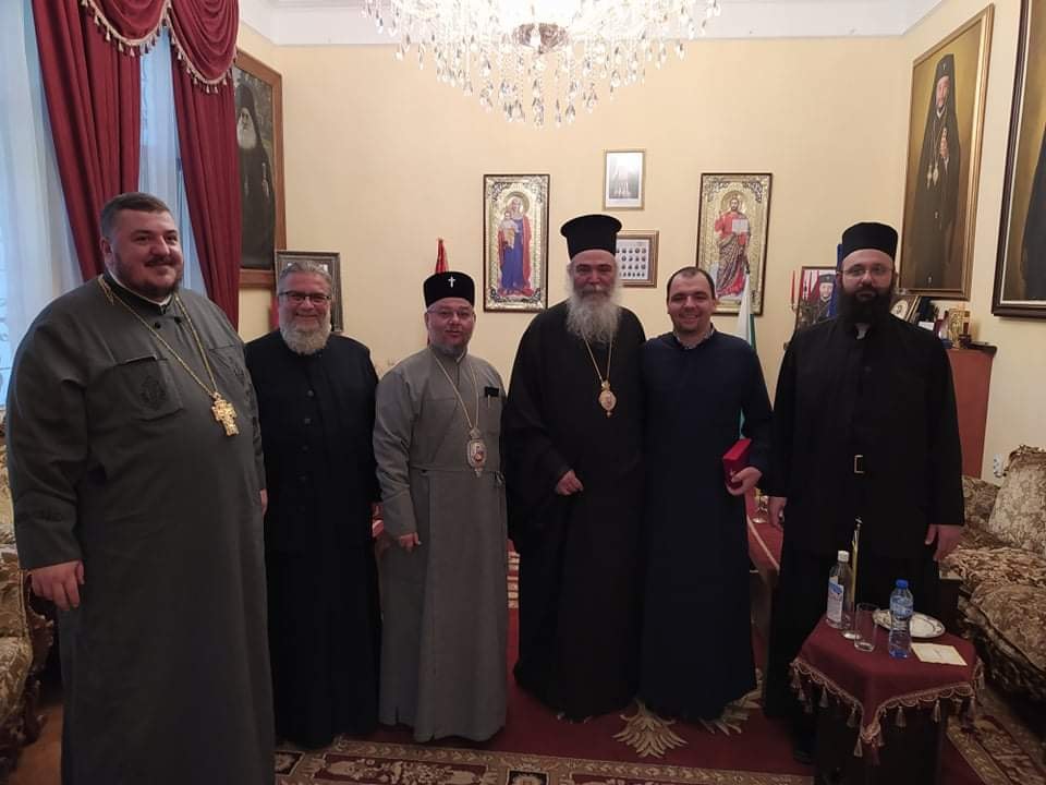 Ο Σεβασμιώτατος, συνοδευόμενος από τον Πανοσ. Αρχιμανδρίτη Βαρθολομαίο Αστεριάδη και τον Διάκονο της Μητροπόλεως Ευφημιανό, έτυχε θερμής υποδοχής από τον Σεβ. Μητροπολίτη Στάρα Ζαγκόρας κ. Κυπριανό, τον Πρωτοσύγκελλο της Μητροπόλεως Αρχιμανδρίτη Θεολόγο και τον βοηθό του Άγκελ Γκεοργκίεφ.