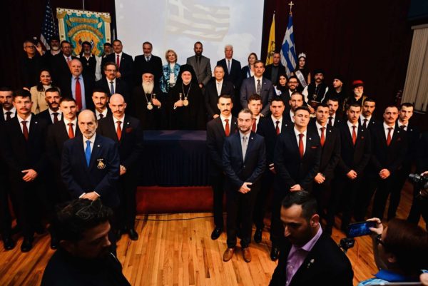 Στην έδρα της Ιεράς Αρχιεπισκοπής Αμερικής, υποδέχθηκε την Πέμπτη 23 Απριλίου 2026, ο Σεβασμιώτατος Αρχιεπίσκοπος Αμερικής κ. Ελπιδοφόρος, πολλούς εκλεκτούς προσκεκλημένους, εκκλησιαστικούς ηγέτες, κυβερνητικούς αξιωματούχους, εκπροσώπους τοπικών αρχών και μέλη των Ελληνικών Ενόπλων Δυνάμεων, καθώς οι εορτασμοί για την ελληνική επέτειο στη Νέα Υόρκη κορυφώνονται ενόψει του εορταστικού σαββατοκύριακου, με αποκορύφωμα την παρέλαση της Κυριακής στην Πέμπτη Λεωφόρο.
